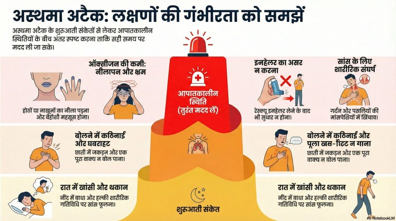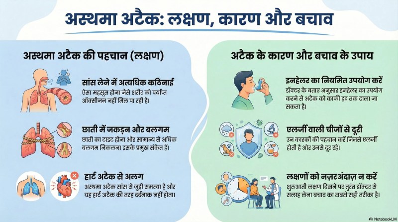 वो कहते हैं, अस्थमा अटैक के कारण मरीज को सांस लेने में काफी दिक्कत होती है। इसके अलावा छाती का टाइट हो जाना, अधिक बलगम निकलना और ऐसा लगना कि सांस आ नहीं रही है। यही अस्थमा अटैक है। ये हार्ट अटैक की तरह दर्दनाक नहीं होता, पर जानलेवा हो सकता है।