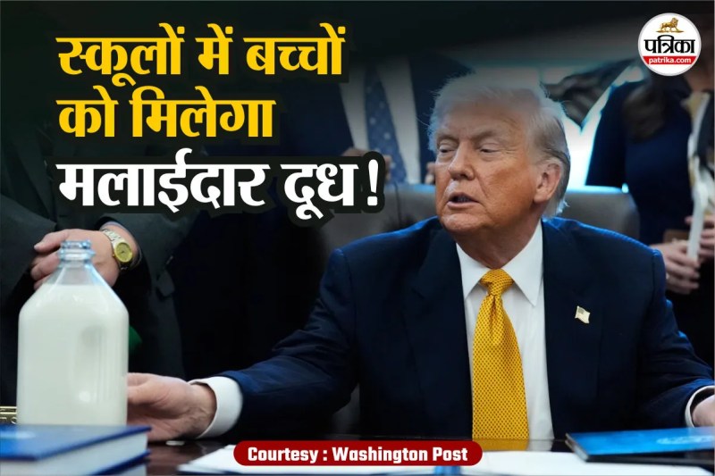 Donald Trump new school lunch policy : भारत की तर्ज पर अमेरिका में भी स्कूली बच्चों के पोषण के लिए एक विशाल सरकारी तंत्र काम करता है। राष्ट्रपति डोनाल्ड ट्रंप (Donald Trump new school lunch policy) ने इस तंत्र में एक बड़ा बदलाव करते हुए 'होल मिल्क' (US School Lunch Program) को स्कूलों में वापस लाने के कानून पर मुहर लगा दी है। यह फैसला 'मेक अमेरिका हेल्दी अगेन' (MAHA) अभियान का हिस्सा है, जिसे स्वास्थ्य सचिव रॉबर्ट एफ. कैनेडी जूनियर के पोषण संबंधित सिद्धांतों पर तैयार किया गया है। पिछले एक दशक से अधिक समय से अमेरिकी स्कूलों में संघीय कानून के तहत केवल फैट-फ्री या कम वसा वाला दूध ही दिया जा सकता था। ट्रंप की नई नीति ने इस प्रतिबंध को खत्म कर दिया है। अब सरकारी सहायता प्राप्त स्कूलों को बच्चों के लिए फ्लेवर्ड और अनफ्लेवर्ड होल मिल्क (मलाईदार दूध) रखना अनिवार्य होगा। प्रशासन का मानना है कि मलाईदार दूध बच्चों (Trump Whole Milk Act) के मानसिक और शारीरिक विकास के लिए जरूरी है।