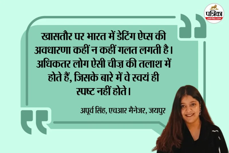 वहीं जयपुर में एक कंपनी की एचआर मैनेजर अपूर्व सिंह ने बताया कि मुझे खासतौर पर भारत में डेटिंग ऐप्स की अवधारणा कहीं न कहीं गलत लगती है। अधिकतर लोग ऐसी चीज़ की तलाश में होते हैं, जिसके बारे में वे खुद ही साफ नहीं होते। ऊपर से अनगिनत विकल्पों की आसान उपलब्धता उन्हें वास्तविकता से दूर ले जाती है। मैं तो किसी से अपने सामाजिक दायरे के माध्यम से मिलना ज्यादा पसंद करूंगी, बजाय इसके कि डिजिटल दुनिया की उस आड़ में भरोसा करूं, जिस पर डेटिंग के मामले में पूरी तरह विश्वास करना मुश्किल है।