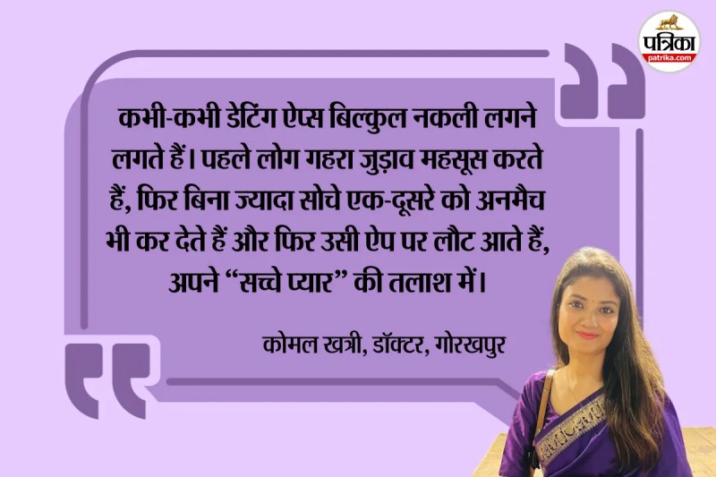 उत्तर प्रदेश के गोरखपुर की डॉक्टर कोमल खत्री का अनुभव भी कुछ हद तक सर्वे में शामिल 21 फीसदी लोगों से मिलता-जुलता है। वह कहती हैं, 'कभी-कभी डेटिंग ऐप्स बिल्कुल नकली-सा लगने लगते हैं। ये भावनाओं का एक तरह का जुआ बन जाते हैं। लोग पहले गहरा जुड़ाव महसूस करते हैं, फिर बिना ज्यादा सोचे एक-दूसरे को अनमैच भी कर देते हैं और फिर उसी ऐप पर लौट आते हैं, अपने “सच्चे प्यार” की तलाश में। मगर हकीकत में ऐसा सच्चा प्यार बहुत कम मिलता है। डेटिंग ऐप्स किसी की असली भावनाओं, सच्ची पसंद या गहरी खुशी को पूरी तरह से नहीं उजागर कर पाते।'