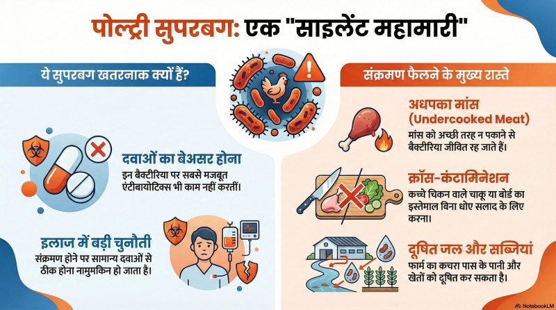 ये सुपरबग पोल्ट्री से इंसानों तक आसानी से पहुंच सकते हैं। अधपका मांस (Undercooked Meat), क्रॉस-कंटामिनेशन (जिस चाकू या बोर्ड पर कच्चा चिकन काटा गया, उसे बिना धोए सलाद काटने के लिए इस्तेमाल करना), फार्म से निकलने वाला कचरा पास के पानी के स्रोतों या खेतों में मिलकर सब्जियों को भी दूषित कर सकता है।