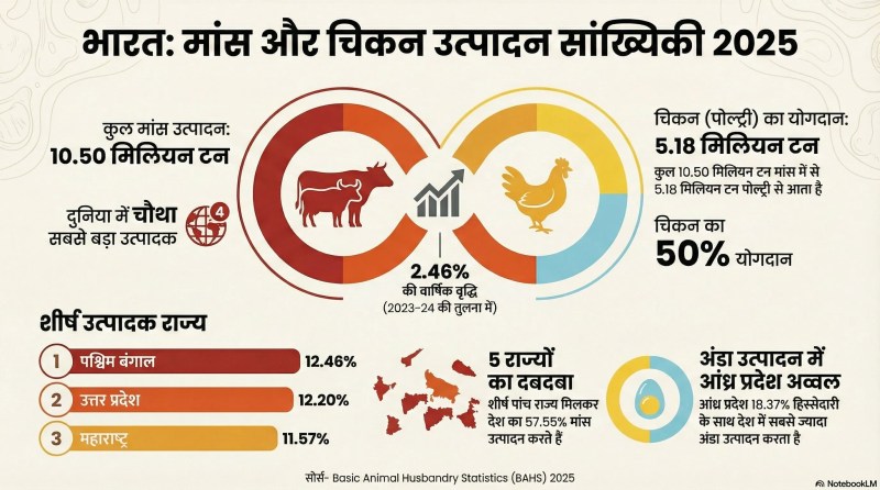 चिकन और मांस उत्पादन का राज्यवार आंकड़ा नीचे देखें-
