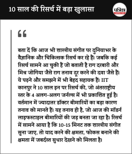जैसे तनाव, अवसाद, चिंता और अकेलेपन से जूझती आज की पीढ़ी के लिए राग यमन, भैरव या मेघ की एक शांत प्रस्तुति, मोबाइल के स्क्रीन पर ही सही, भीतर के अकेलेपन को दूर करने बारिश की बूंद का काम कर रही है। बाहर बादल न भी बरसें, लेकिन कानों के रास्ते जो ध्वनि अंदर जाती है, वह दिमाग की भागदौड़ को थोड़ी देर के लिए थाम लेती है। शास्त्रीय संगीत की सबसे बड़ी शक्ति यही है कि... वह इंसान के मन के पल-पल बदलते मौसम को सुकून और ठहराव में बदलने की हिम्मत रखता है।