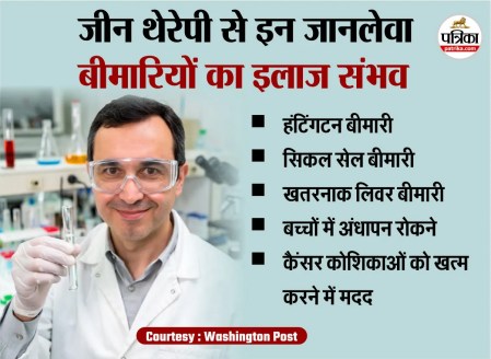 Gene Therapy : मेडिकल साइंस में लगातार खोज हो रहे हैं। वैज्ञानिकों के प्रयास के कारण अब जानलेवा बीमारियों का इलाज संभव हो पाया है। यहां तक कि बच्चों में होने वाले अंधापन तक का इलाज भी किया जा सकता है। आज 'पत्रिका स्पेशल' में जीन थेरेपी (Gene Therapy Kya Hai) के बारे में जानेंगे कि क्यों ये बीमारियों के लिए अभिशाप और इंसानों के लिए वरदान की तरह है।
