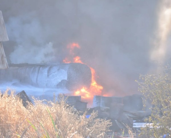 आग लगने के बाद टार फैक्ट्री से निकलती आग की लपटें।