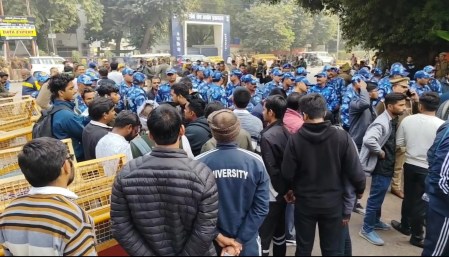 UPPSC Protest: प्रयागराज में उत्तर प्रदेश लोक सेवा आयोग (UPPSC) के बाहर सोमवार से प्रतियोगी छात्रों का बड़ा आंदोलन शुरू हो गया है। आयोग की कार्यप्रणाली से नाराज अभ्यर्थी बड़ी संख्या में गेट पर एकत्र हो गए और पारदर्शिता की मांग को लेकर विरोध प्रदर्शन कर रहे हैं। हालात को देखते हुए पुलिस प्रशासन पूरी तरह सतर्क है और आयोग परिसर के बाहर भारी पुलिस बल तैनात किया गया है। बैरिकेडिंग कर पूरे इलाके को सुरक्षा घेरे में ले लिया गया है।