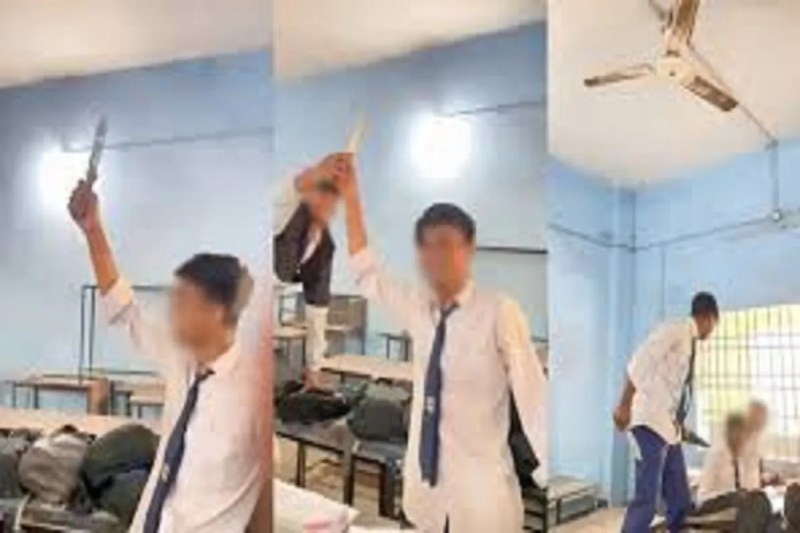 Raipur News: सरकारी स्कूल में छात्र पढ़ाई छोड़कर चाकू लहराते हुए वीडियो बना रहे हैं। इस घटना से स्कूल में शिक्षकों की मॉनिटरिंग की पोल खुल गई है। मोवा के स्वामी आत्मानंद स्कूल की 12वीं के कुछ छात्रों का एक वीडियो वायरल हुआ है। इसमें कुछ छात्र क्लास में धारदार चाकू लहराते हुए नजर आ रहे हैं।