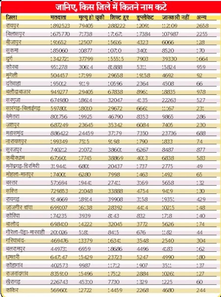 प्रदेश में कुल 2 करोड़ 12 लाख 30 हजार 737 मतदाता है, जिसमें 27 लाख 50 हजार 822 मतदाताओं का नाम काटा गया है। इसमें वह मतदाता शामिल हैं जिनकी मृत्यु हो चुकी है, दूसरी जगह शिफ्ट हो चुके हैं, अन्य कारणों से इनके नाम काटे गए हैं। अब 23 दिसंबर के बाद से नाम जुड़वाने, त्रुटि सुधरवाने समेत अन्य दावा-आपत्ति के फार्म व घोषणा पत्र भरना होगा। इसके बाद ही मतदाताओं का नाम जोड़ा जाएगा।