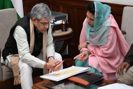 राजसमंद. राजसमंद संसदीय क्षेत्र में रेलवे संपर्क के विस्तार और यात्री सुविधाओं को लेकर एक महत्वपूर्ण पहल करते हुए सांसद महिमा कुमारी मेवाड़ ने नई दिल्ली में केंद्रीय रेल, सूचना एवं प्रसारण तथा इलेक्ट्रॉनिक्स एवं सूचना प्रौद्योगिकी मंत्री अश्विनी वैष्णव से शिष्टाचार भेंट की। इस दौरान राजसमंद जिले से जुड़े विभिन्न रेलवे विकास कार्यों, नई रेल सेवाओं और अधोसंरचना सुधार से संबंधित मुद्दों पर विस्तार से चर्चा हुई।