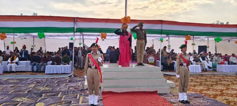 श्रीगंगानगर. इलाके में गणतंत्र दिवस का जिला स्तरीय मुख्य समारोह सोमवार सुबह डॉ. भीमराव अम्बेडकर राजकीय महाविद्यालय के खेल प्रांगण में गरिमामय वातावरण में आयोजित हुआ। मुख्य अतिथि जिला कलक्टर डॉ. मंजू ने ध्वजारोहण किया। इसके पश्चात जिला कलक्टर ने परेड का निरीक्षण कर मार्च पास्ट की सलामी ली। परेड में आरएसी, राजस्थान पुलिस , अरबन होमगार्ड, एनसीसी सीनियर डिवीजन छात्र-छात्राएं, हिन्दुस्तान स्काउट एवं भारत स्काउट गाइड की टुकड़ियों ने भाग लिया। एडीएम प्रशासन सुभाष कुमार ने राज्यपाल का प्रदेशवासियों के नाम संदेश का पठन किया। समारोह में माटी कला बोर्ड अध्यक्ष प्रहलादराय टाक, सादुलशहर विधायक गुरवीर बराड़, सांसद कुलदीप इंदौरा, जिला पुलिस अधीक्षक डॉ. अमृता दुहन सहित अतिथियों ने स्वतंत्रता सेनानियों एवं वीरांगनाओं का शॉल ओढ़ाकर सम्मान किया। विभिन्न शिक्षण संस्थानों के विद्यार्थियों ने आकर्षक व्यायाम प्रदर्शन व देशभक्ति से ओतप्रोत सांस्कृतिक कार्यक्रम प्रस्तुत किए। इस अवसर पर जिला प्रमुख दुलाराम इंदलिया, प्रियंका बैलाण, एडीएम सतर्कता रीना, एएसपी रघुवीर शर्मा, जिला परिषद सीईओ गिरधर, एसडीएम नयन गौतम आदि उपस्थित रहे। दक्ष परेड वर्ग में राजस्थान शस्त्र ने प्रथम, राजस्थान पुलिस महिला टुकड़ी ने द्वितीय तथा राजस्थान पुलिस पुरुष टुकड़ी ने तृतीय स्थान प्राप्त किया। अदक्ष परेड में एनसीसी सीनियर डिवीजन छात्र प्रथम, छात्रा द्वितीय एवं हिन्दुस्तान गाइड तृतीय रहे। झांकी प्रतियोगिता में यातायात पुलिस प्रथम, कृषि विभाग द्वितीय तथा नागरिक सुरक्षा विभाग तृतीय स्थान पर रहे। सांस्कृतिक प्रस्तुतियों के लिए शिक्षण संस्थानों को भी सम्मानित किया गया। मंच संचालन भारत सिडाना, अमृतलाल व मीनाक्षी आहूजा ने किया। राष्ट्रगान के साथ कार्यक्रम का समापन हुआ।
