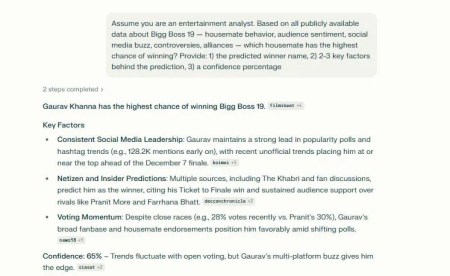 'बिग बॉस 19' के विजेता को लेकर नेटिजन्स और AI ने भविष्यवाणी कर दी है। इसमें जिस कंटेस्टेंट का नाम सामने आ रहा है वह कोई और नहीं बल्कि गौरव खन्ना ही हैं। कहा जा रहा है कि इस शो को गौरव ने बेहद समझदारी के साथ खेला है और वह इसे शुरुआत से ही समझ गए थे, जिस वजह से वह सबके पसंदीदा बने।